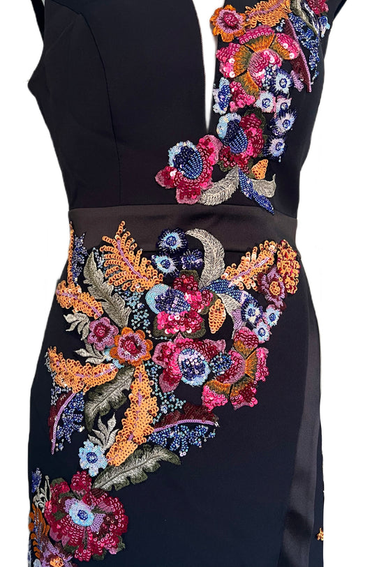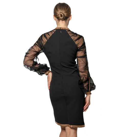 Black and Nude Off the Sleeve Chiffon Lace Dress