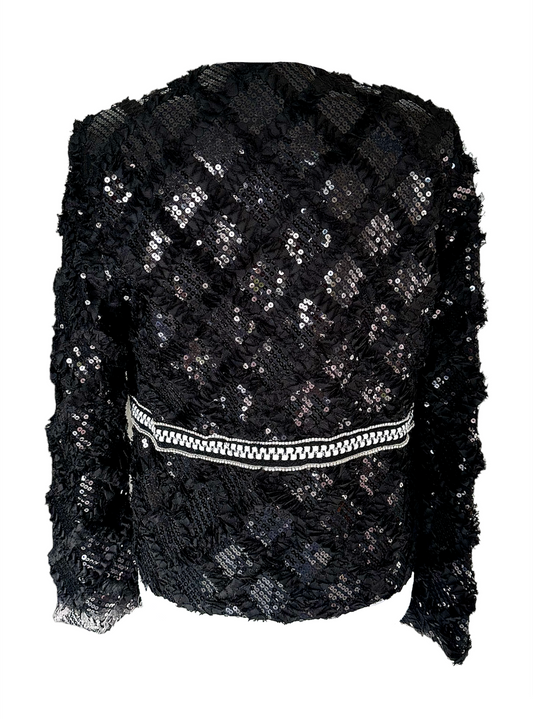 Black and White Long Sleeve Top and Mini Skirt Set 2 Piece Tweed Dress