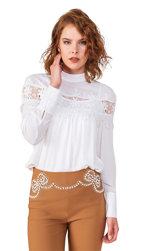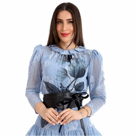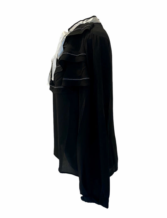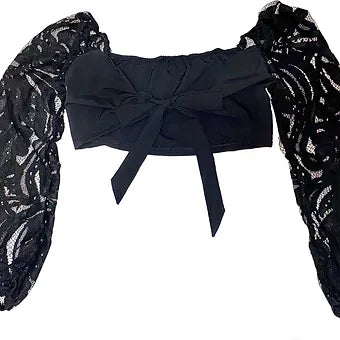 Black Self Tie Lace Long Sleeve Crop Top Blouse Shirt